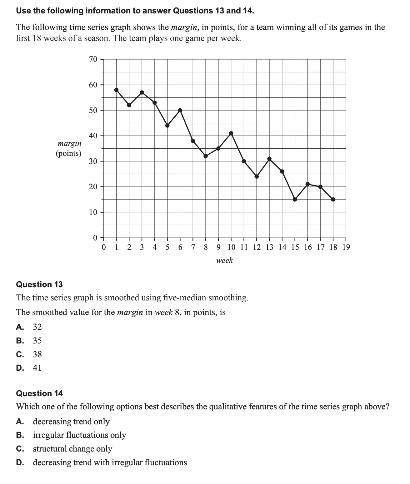 - In time series questions, students often identified trends or seasonality correctly, but marks were lost when formal terminology from the study design was not used, even when the idea was correct.