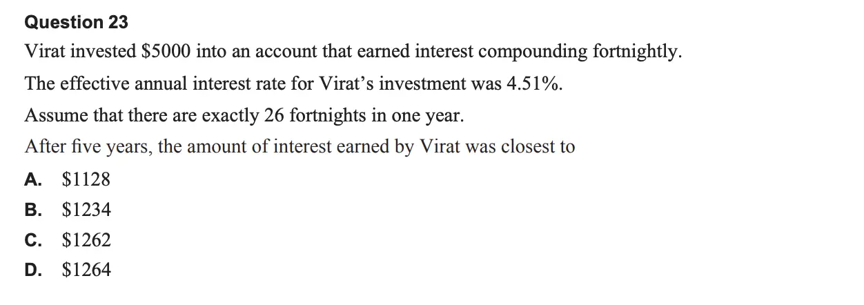 Step 3. The interest earned = $6233.89 − $5000 = $1233.89 ≈ $1234